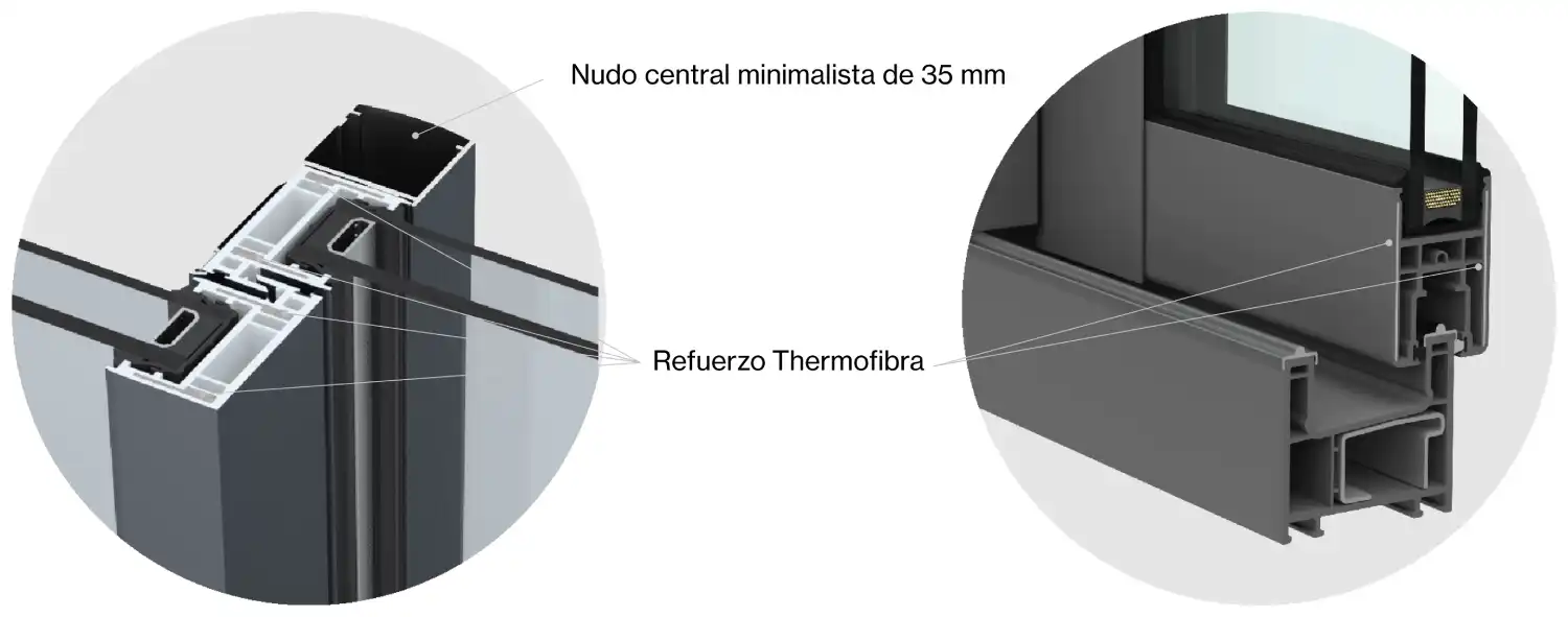 | Prestaciones térmicas (EN ISO 10077-2) | Uw ≥ 0,91 W/m2K (Uf = 0,88 W/m2K) |